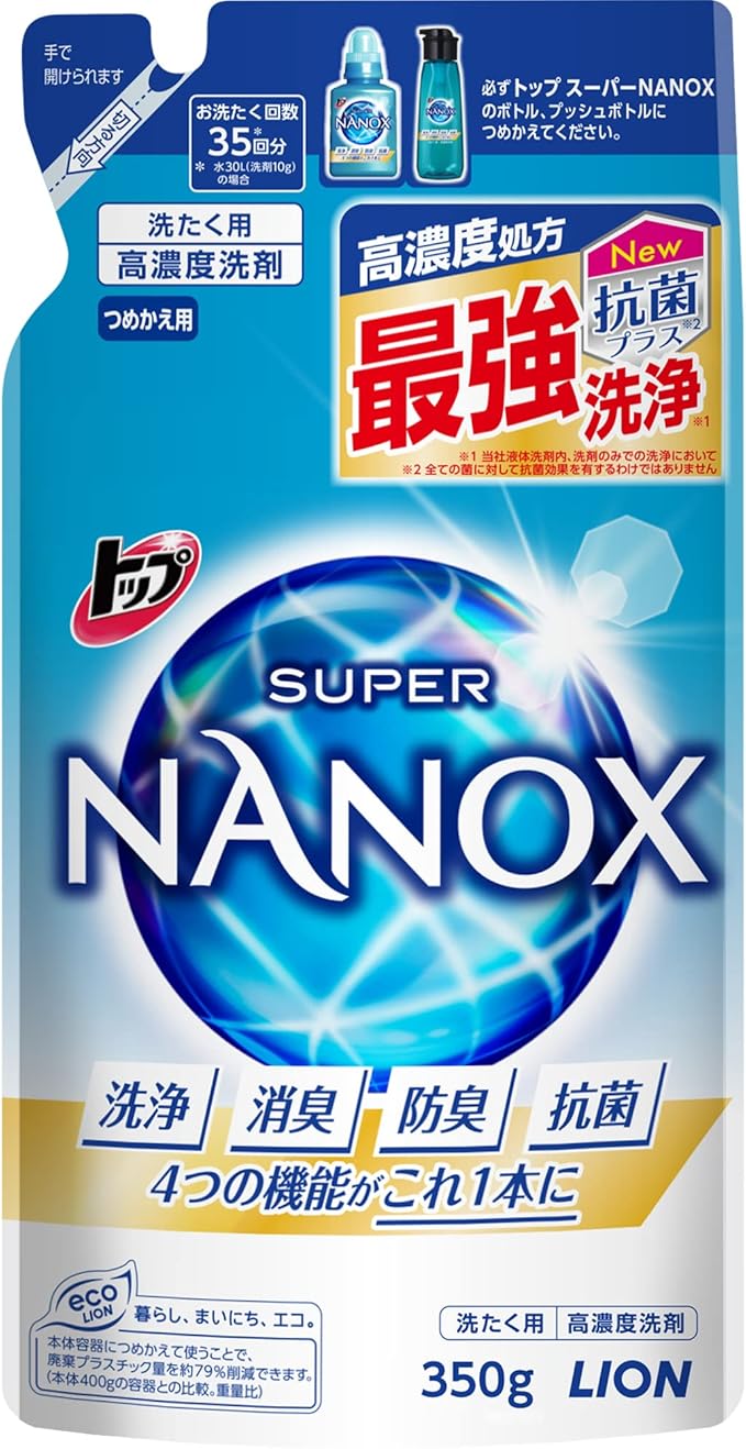 トップ スーパーナノックス 蛍光剤・シリコーン無添加 高濃度 洗濯洗剤 液体 詰め替え 350g