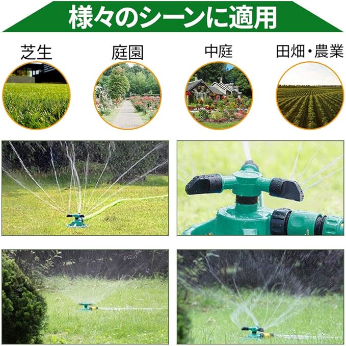 ☑【様々なシーンに適用】芝生やお庭での家庭菜園・花壇の水やり・畑での農作業・夏場の水まきなど様々な散水シーンに最適なスプリンクラーです。