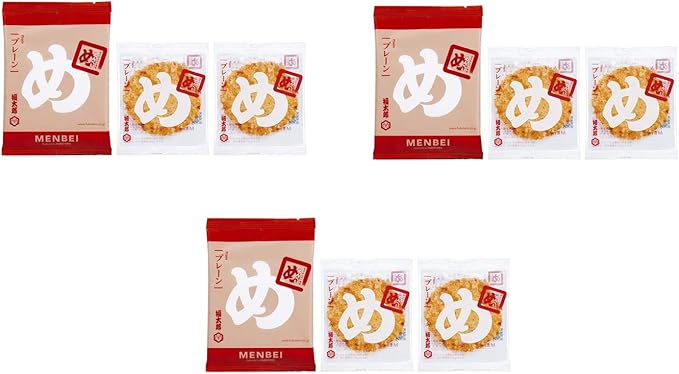 コンビニー限定 L 2021年4月 福岡県限定 山口油屋福太郎 めんべい 辛子めんたい風味 プレーン Plain MENBEI Produced by FUKUTARO 油菓子 (2枚x2袋)x3パック 食べ試しセット 煎餅 せんべい