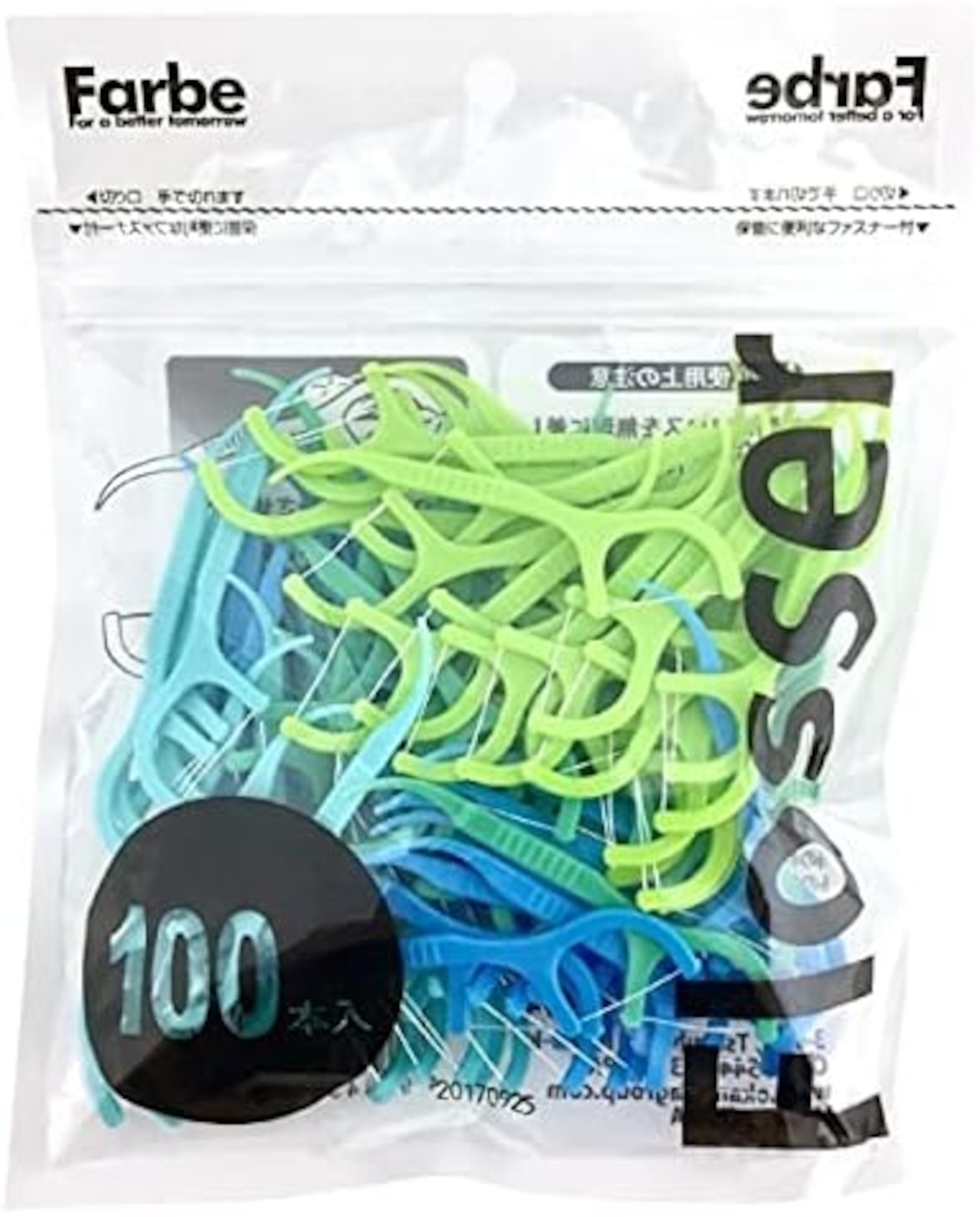 シンプルで使いやすいピック付のフロッサーです。 糸は防弾チョッキにも使われているとても丈夫なUHMWPE(超高分子量ポリエチレン)という繊維を使用しています。 清掃中によるほつれが少なく丈夫で切れにくい繊維は、歯間に入りやすくすっきり歯垢を除去します。 (※フロスが歯に引っかかったり、ほつれる場合、虫歯や詰め物が傷んでいる恐れがありますので、歯科医にご相談ください。) フロス部を前後させながら歯間に挿入し、ゆっくりと本体を前後上下に動かして汚れを取り除きます。 ハンドル下部は、ようじとして使用できます。 【使用上の注意】 ・歯間にフロスを無理に差し込まないでください。歯茎を傷つける恐れがあります。 ・無理な力を入れると破損し歯や口内を傷つけることがありますので、ご注意ください。 【材質】 柄:HIPS(高密度ポリスチレン) 糸:UHMWPE(超高分子量ポリエチレン) 耐熱温度:80℃