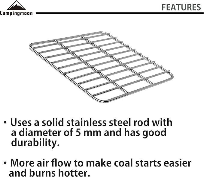 この304ステンレススチールチャコールベッド火格子は、キャンプグリルMT-2やその他の適切なサイズのファイヤーピットに適しています。