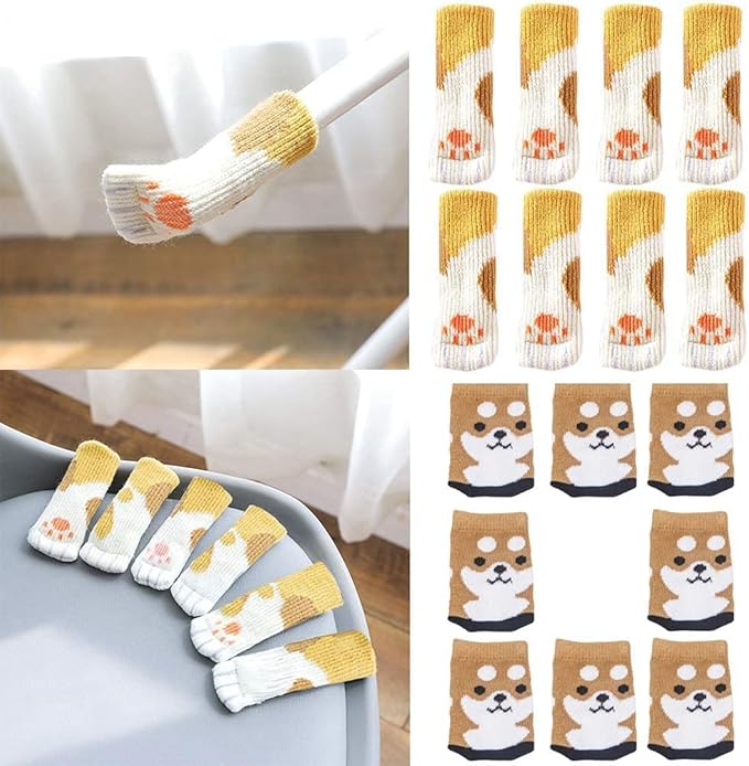 16個の椅子の脚カバー堅木張りの床用の椅子の脚の靴下かわいい猫の足テーブルの脚パッド、かわいい子犬のニット滑り止めタイルフロアプロテクター再利用可能な家具とフロアプロテクター HUJIAOTAO MAOGOU