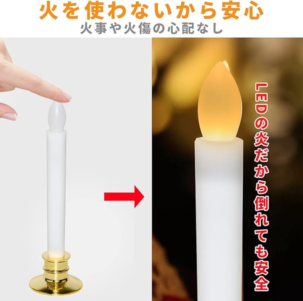 商品内容:Ledロウソク本体 2本、Ledロウソク用台 2個、1つの多機能リモコン。