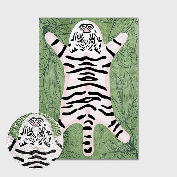 ラグ ラグマット 北欧風 洗える ファッション モダン トラ柄 虎柄 デザインラグマット 絨毯風 デコレーション モダン ピンク桃色 オシャレ 耐摩耗性 抗菌防臭 防カビ 滑り止め付 速乾性 敷物 マット じゅうたん 春 80x160cm 夏 秋 ラグマット