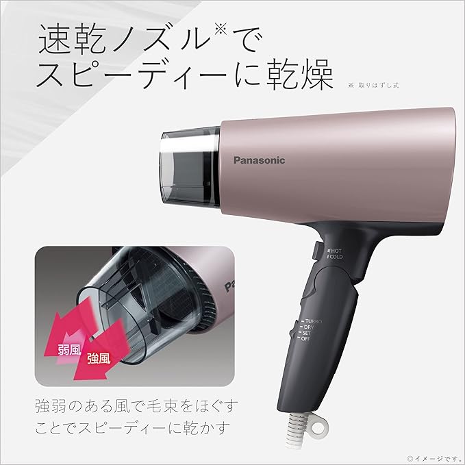 ※1 ミネラルマイナスイオンとは、亜鉛電極を含む放電ユニットから発生されるマイナスイオンです。 ※2 2021年10月、当社ドライヤーにおいて ※3 当社従来品2020年発売EH-NE6Eとの比較(当社調べ)