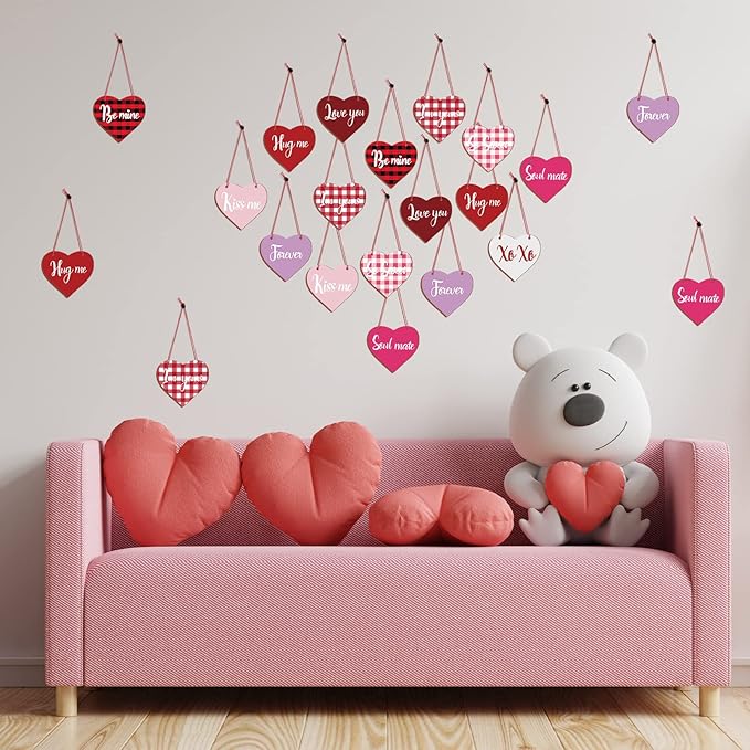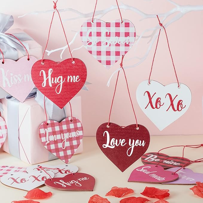 使い方は簡単: バレンタインデーのミニオーナメントは上部に2つの穴があるので、ロープに入れやすく、吊り下げやすく、簡単に取り外すことができ、時間とエネルギーを節約できます。