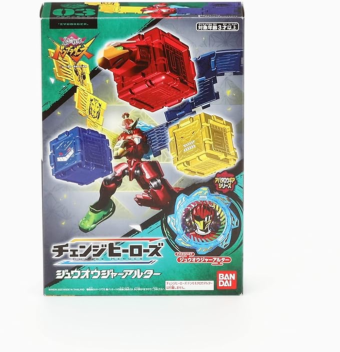 ジュウオウジャーアルターは3体のキューブアニマルのセットで、別売りの「チェンジヒーローズ ドンモモタロウアルター」と合体することで、 『ドンジュウオウモモタロウアルター』が完成します。