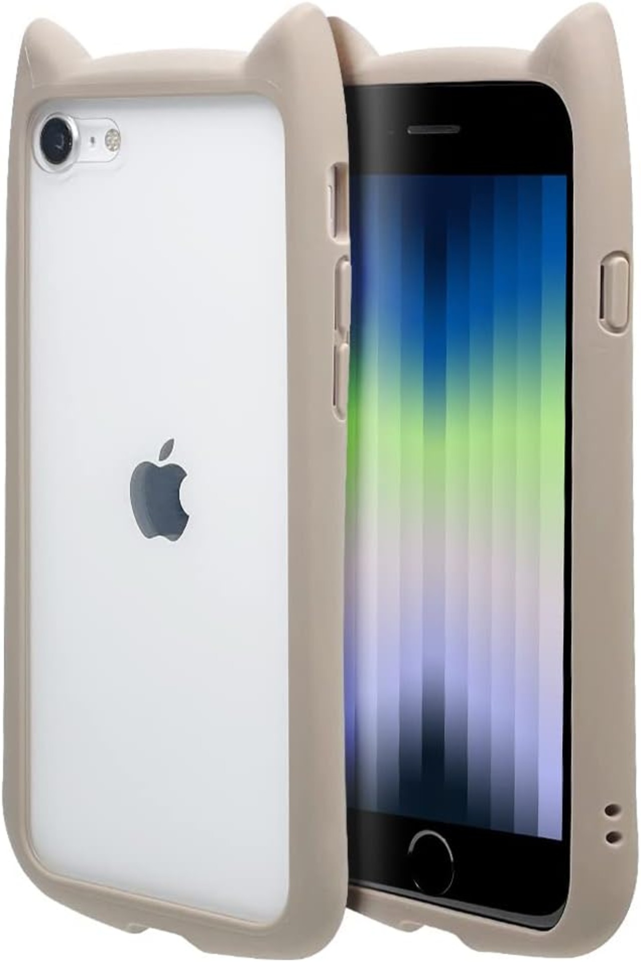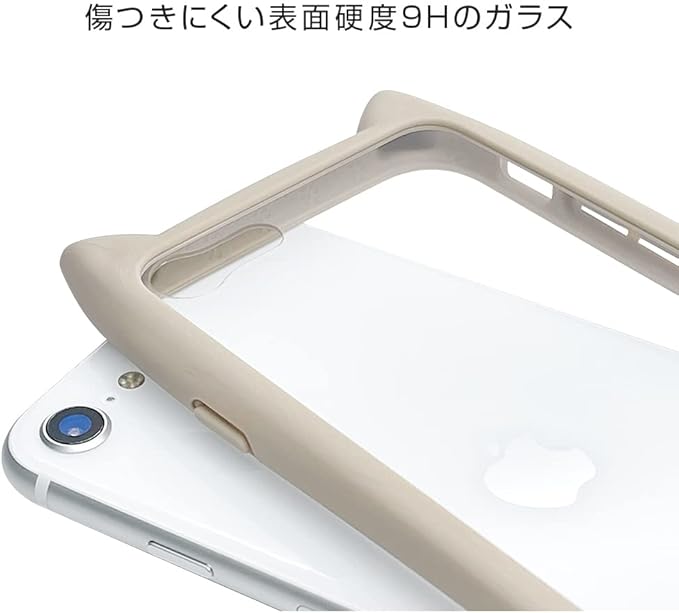 ラスタバナナ iPhone SE3 SE2 8 7 共用 ケース カバー ハイブリッド 背面強化ガラス 背面クリア TPUバンパー+GLASS mimi 猫 ネコ 猫耳 かわいい ベージュ アイフォンse スマホケース 6832IP247HB