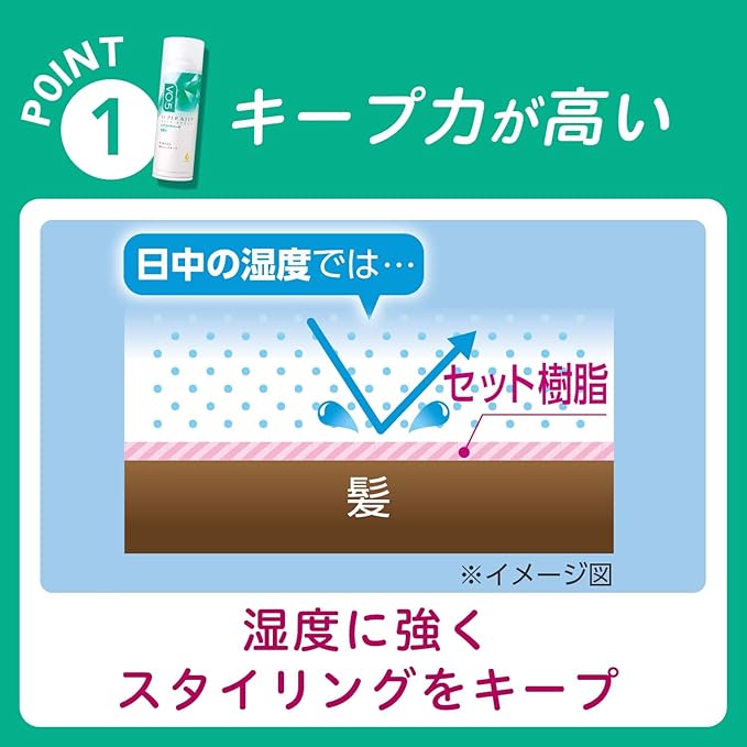 商品特長 ヘアスタイルをしっかり固めてロングキープ。雨・風の日もくずれません。髪をケアする5種類のVital Oil配合。