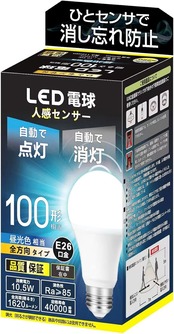 人感センサー LED 電球 E26口金 100形 昼光色相当 消灯お知らせ機能搭載、自動点灯、消灯、消し忘れ防止、高輝度、省エネ、長寿命
