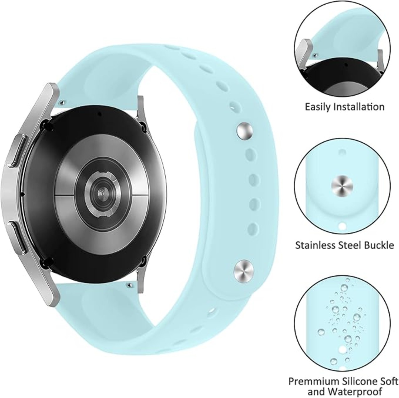 20mmバンドfor Samsung Galaxy Watch 6/5 40mm 44mm/5Pro 45mm/Galaxy Watch 4 40mm 44mm/Galaxy Watch 6/4 Classic 47mm 43mm/46mm 42mm スポーツシリコン交換ストラップ 柔らかい 通気性 防水 防汗 男女兼用Galaxy Watch 3 41mm/Active 2 両面調整式バックル