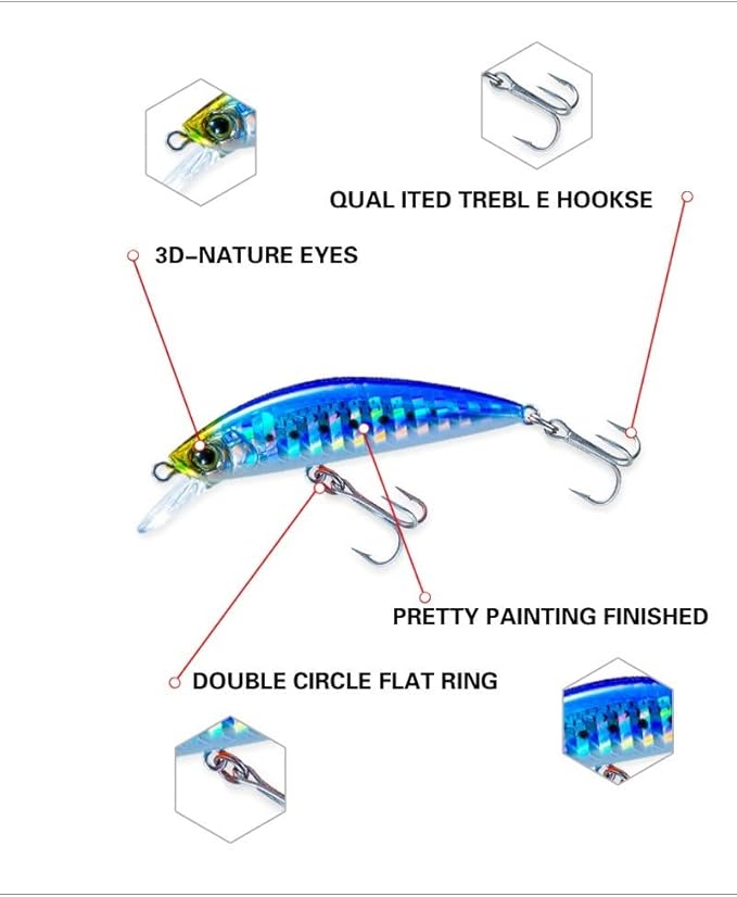 ルアー重量:6gルアー長:5cmダイビング深さ:0.5-1m