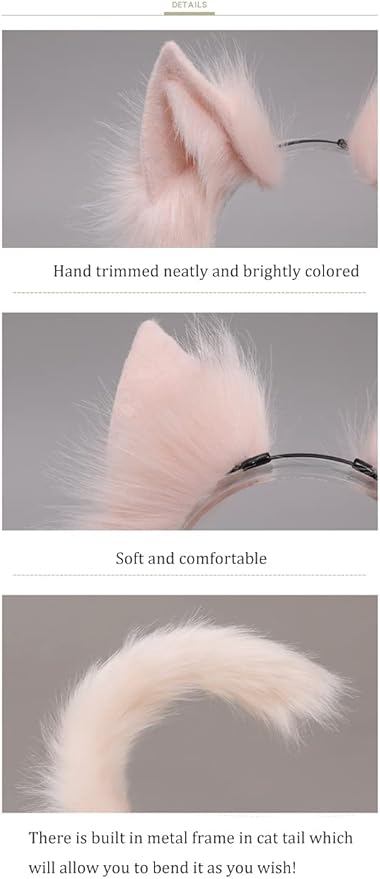 高品質 : ファッショナブルでユニークな毛皮のような猫耳のヘッドバンドと尻尾は、純粋な手作りで、非常に柔らかく、リアルで滑らかな質感の高品質のフェイクファーで作られており、あなたをより魅力的にし、パーティーで目立ちます。