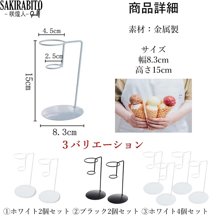 SAKIRABITO アイスクリームスタンド ソフトクリームスタンド コーンスタンド 金属製 展示用 ケーキスタンド (ホワイト2個セット)