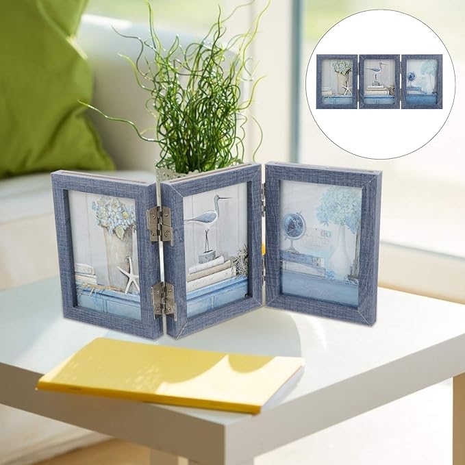 ビンテージ トリプル フレーム: フォト フレームは、サポートを提供する頑丈なヒンジを備えています。 複数の写真を横から横にエレガントに表示します。