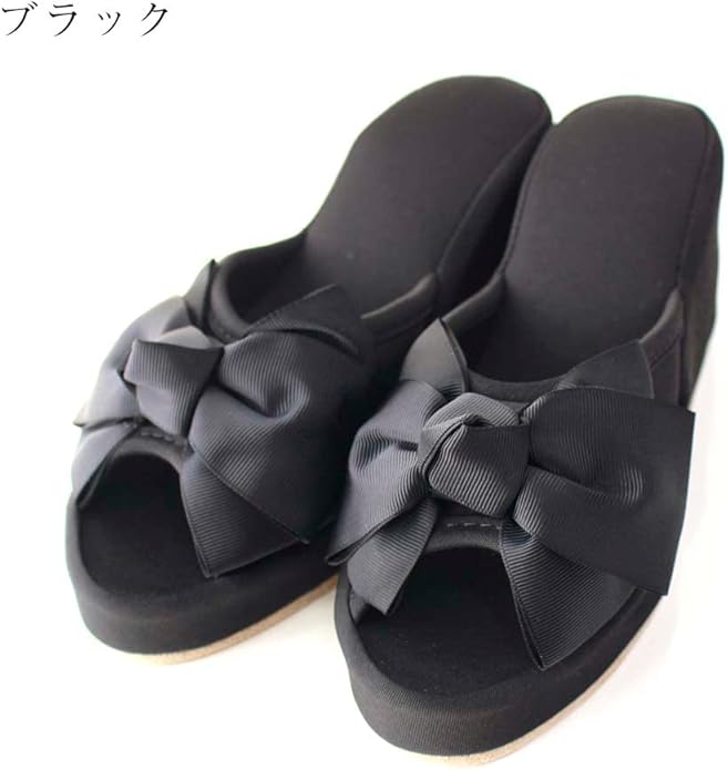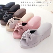 大きな3重のグログランの大きなリボンが特徴の厚底ルームシューズ