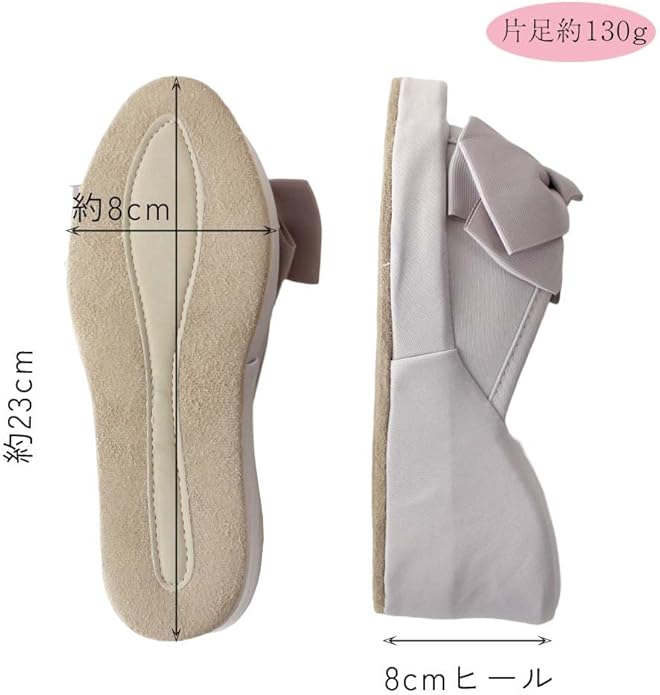 大きな3重のグログランの大きなリボンが特徴の厚底ルームシューズ。印象的な大きめのリボンがアクセントになり、豪華さを演出しています。 履いているだけで、エレガントな気分になれそう。 8cmヒールなので、後姿もとっても素敵!!女性の願いが叶うスリッパです。学校行事にもおすすめのデザインです。 裏底は、スウェード調の生地を張り、真ん中に合成皮革のすべり止めつきの為、 歩いているときにペタペタと音がならない静音仕上げとなっております。【サイズ】レディースM~Lサイズ 約23 8cm ヒール約8cm