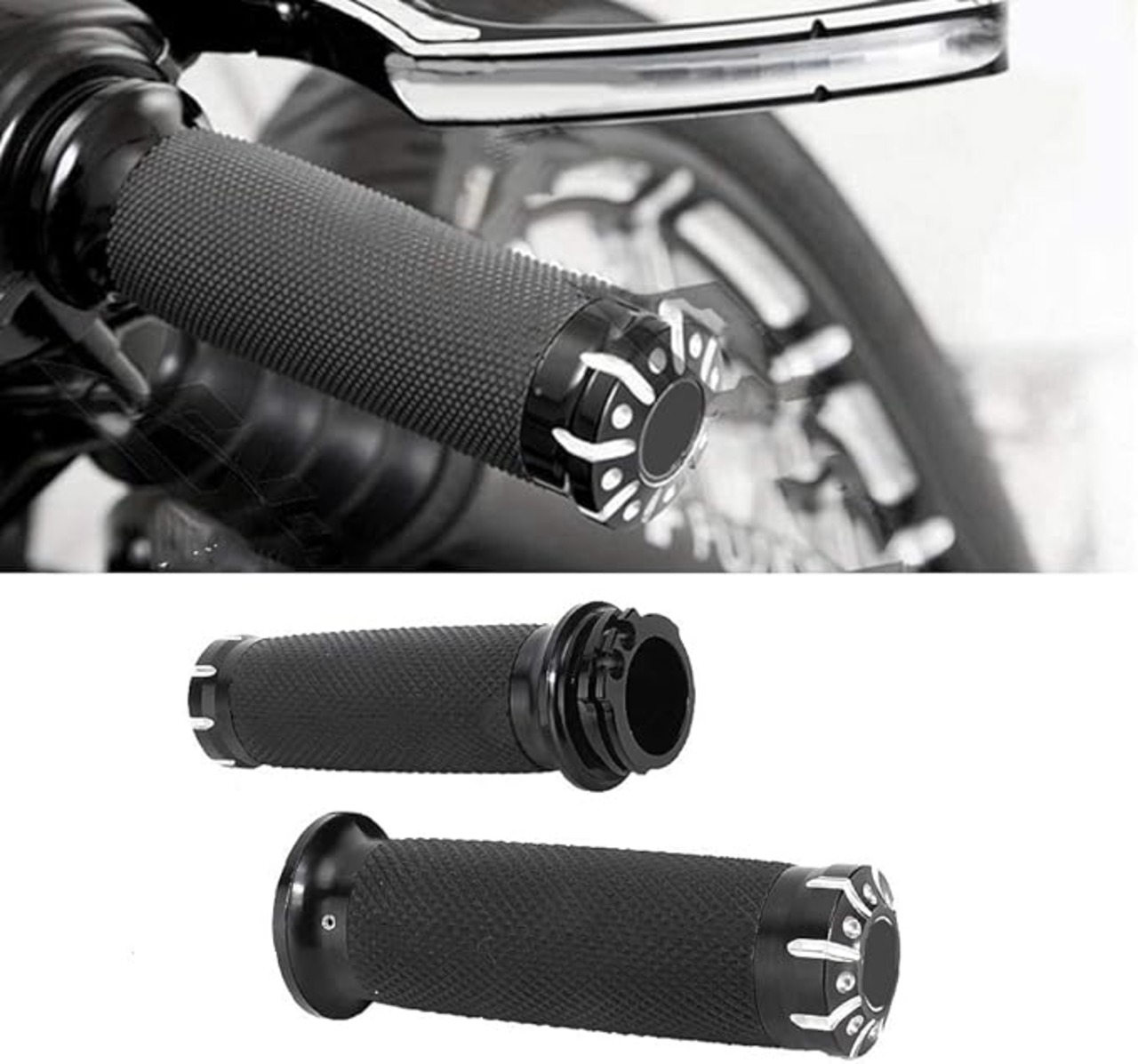 バイクハンドルバーグリップ モーターサイクルハンドルバーグリップ 25mm 2本/セット 滑り止め 握りやすい 衝突防止 安定的 アルミ合金材質 ハーレーVRSCXL XR1996年に適用
