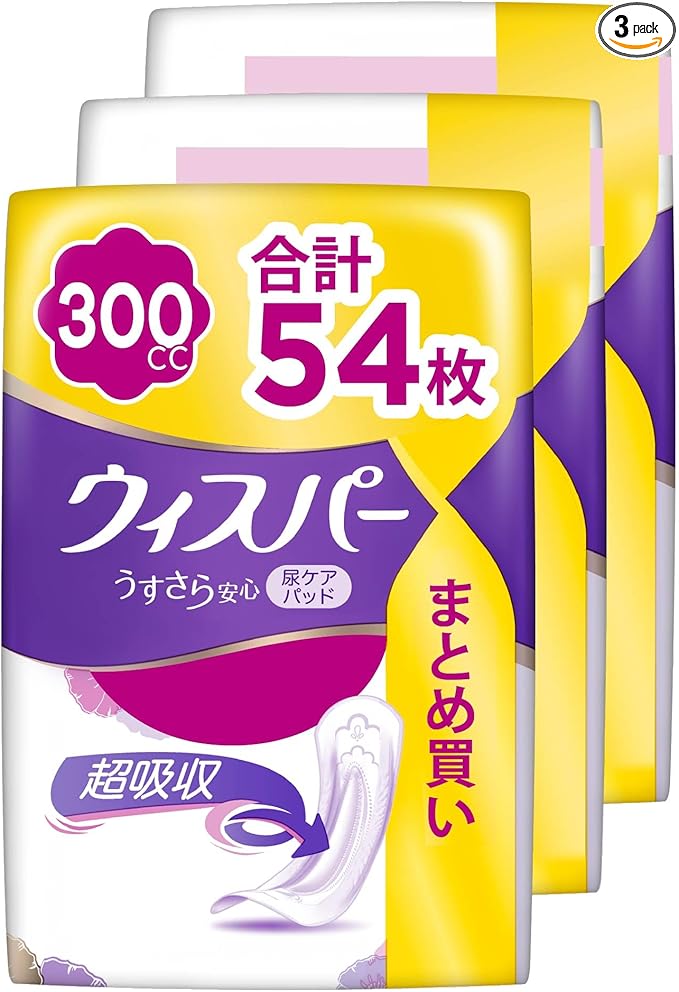 WHISPER ウィスパー うすさら安心 300cc 54枚 (18枚 3パック) (尿漏れパッド 尿とりパッド 女性用)【安心用】