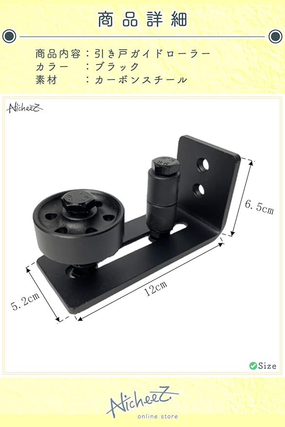【商品内容】引き戸ガイドローラー セット数:1個 素材:炭素鋼 カラー:ブラック ベース:長さ/約12.8cm 幅/約5cm 高さ/約6.3cm ※詳細は画像参照