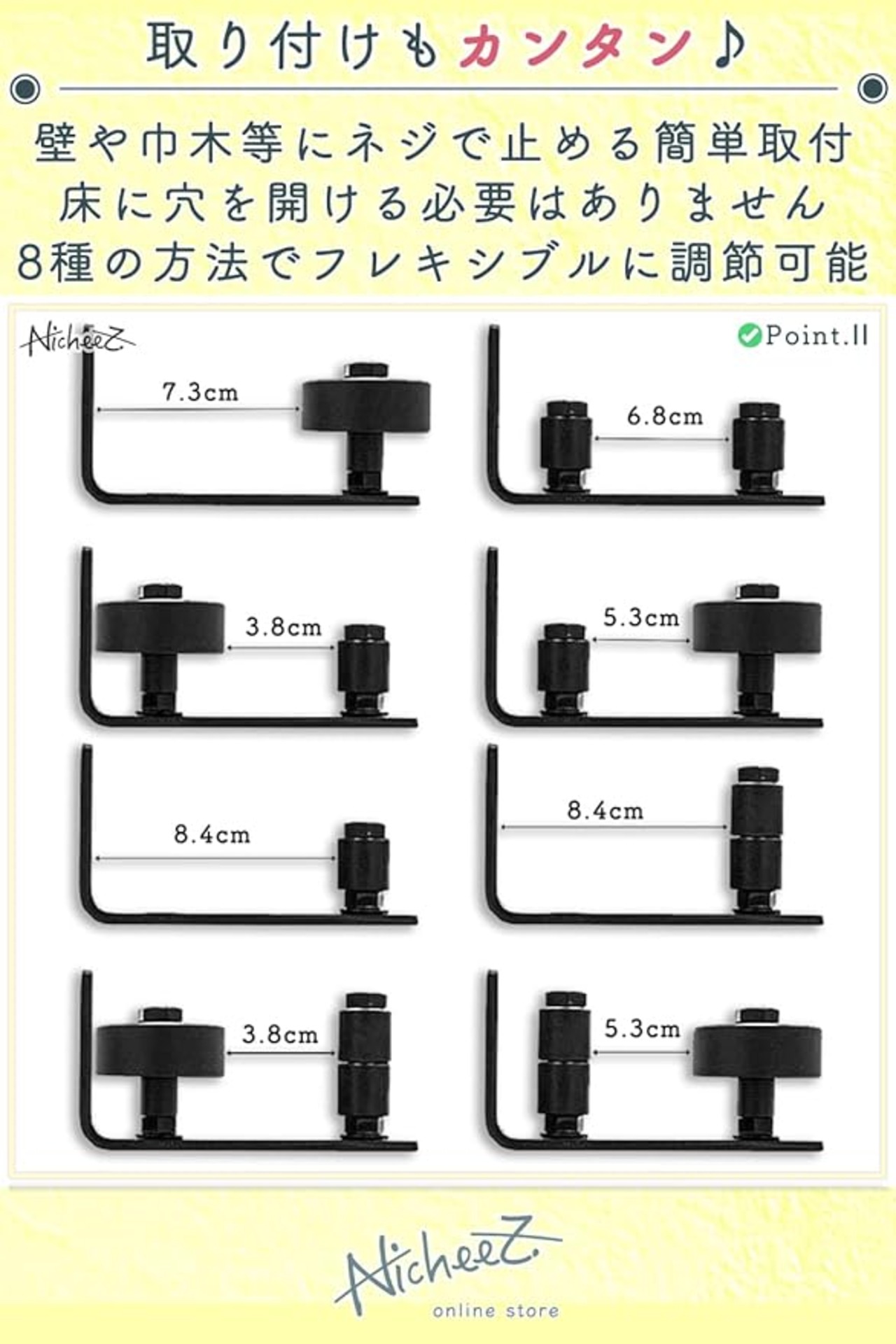 【簡単取付♪】位置決めたら床に置いて壁や巾木等にネジで止めるだけの簡単取付♪8種類の設置方法で様々な吊り戸に対応。ローラーの間隔がフレキシブルに調節が可能です。