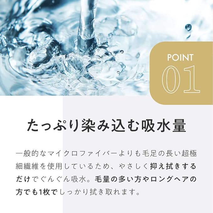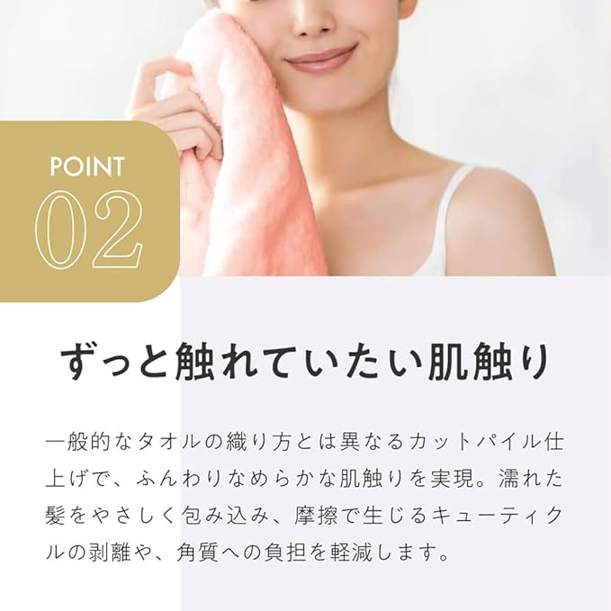 【OKヘアドライ】・余分な水分は擦らず除去・ドライヤーの熱は最低限に・オーバードライしない:髪を極力優しくかわかすためには「抑え拭き」でしっかり水分を吸収するタオルがおすすめ