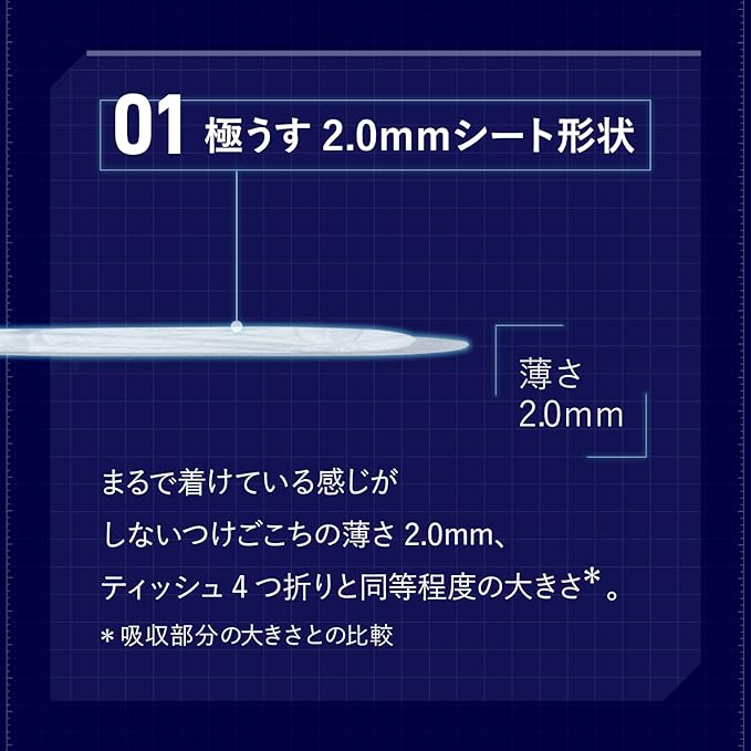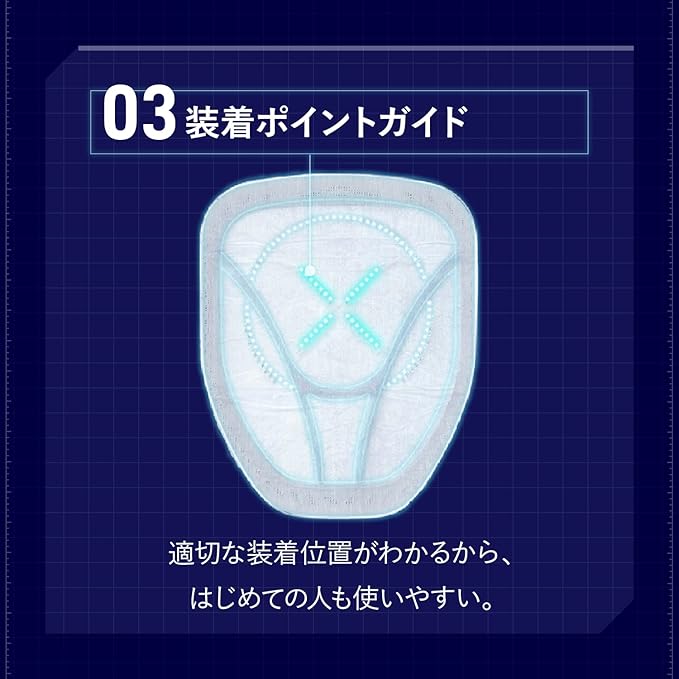男性専用の「ズボンにしみない、目立たない」軽い尿もれケアシート。「極うす2.0mm吸水シート」で、つけごこち快適。「ぴったりスリット」設計で、動きにあわせてしっかりフィット。「装着ポイントガイド」ではじめての人も使いやすい。
