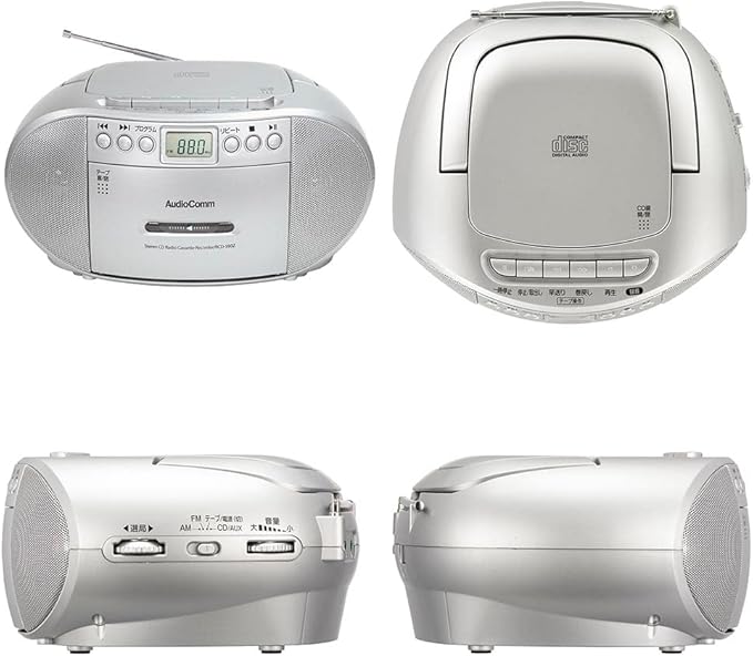 オーム電機AudioComm CDラジカセ CDラジオ CDプレーヤー カセットレコーダー ポータブル カセットテープ再生/録音 コンセント 電池式 語学学習 英検 TOEIC リスニング ヒアリング対策 幼児教育 ダンス ラジオ体操 シルバー RCD-590Z-S 03-5038 OHM