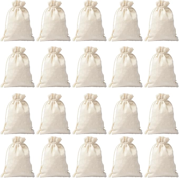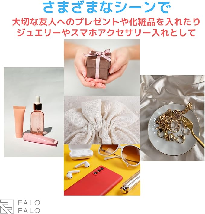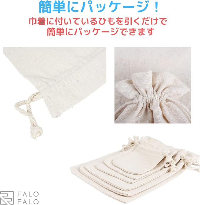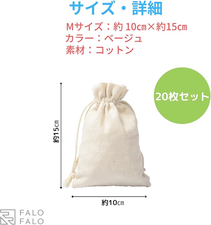 FALOFALO コットン素材巾着袋 小物入れ 収納 ギフトバック オフ白 綿巾着袋 無地 (M20枚セット)