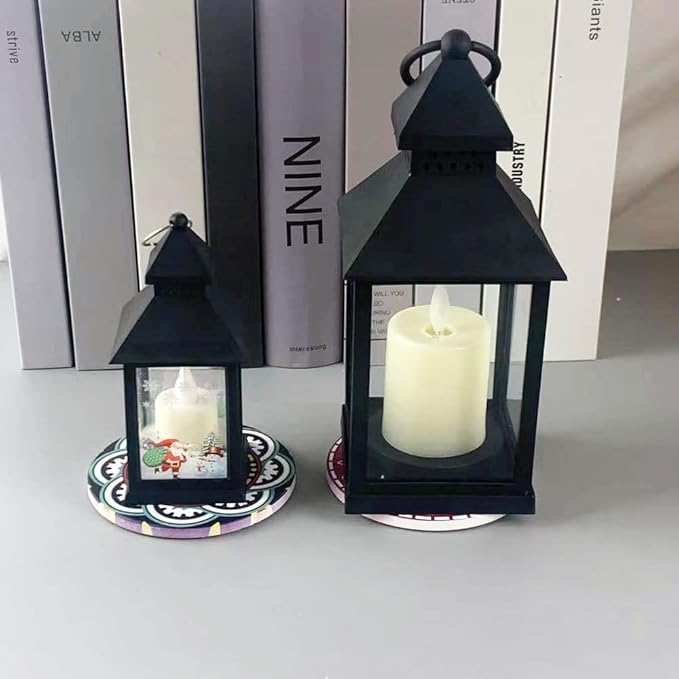 キャンドルランタン、クリスマスランタン12個、LEDティーライト付きヴィンテージクリスマスキャンドル、サンタクロースランタン、ハンギングランプ、無火キャンドルランプ、クリスマスホリデーテーブルデコレーション用 (Color : Bronze, Size : 6.4*6.4*14cm)
