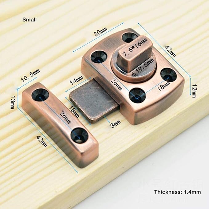 ロックラッチ、スライドボルト、ドアロックボルト、2個ドアラッチロック回転ボルトゲートスライドドアキャッチボルト、バスルーム、トイレ、窓、食器棚用 - つや消し仕上げ (Color : Black, Size : Small) (Color : Red Bronze, Size : S)