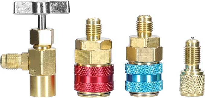 YALIYA マニホールドゲージセット エアコン冷媒充電ツール 真鍮デュアルバルブ圧力計 5フィートホースクイックカプラーアダプター付き R12/R22/R134a/R502冷媒用