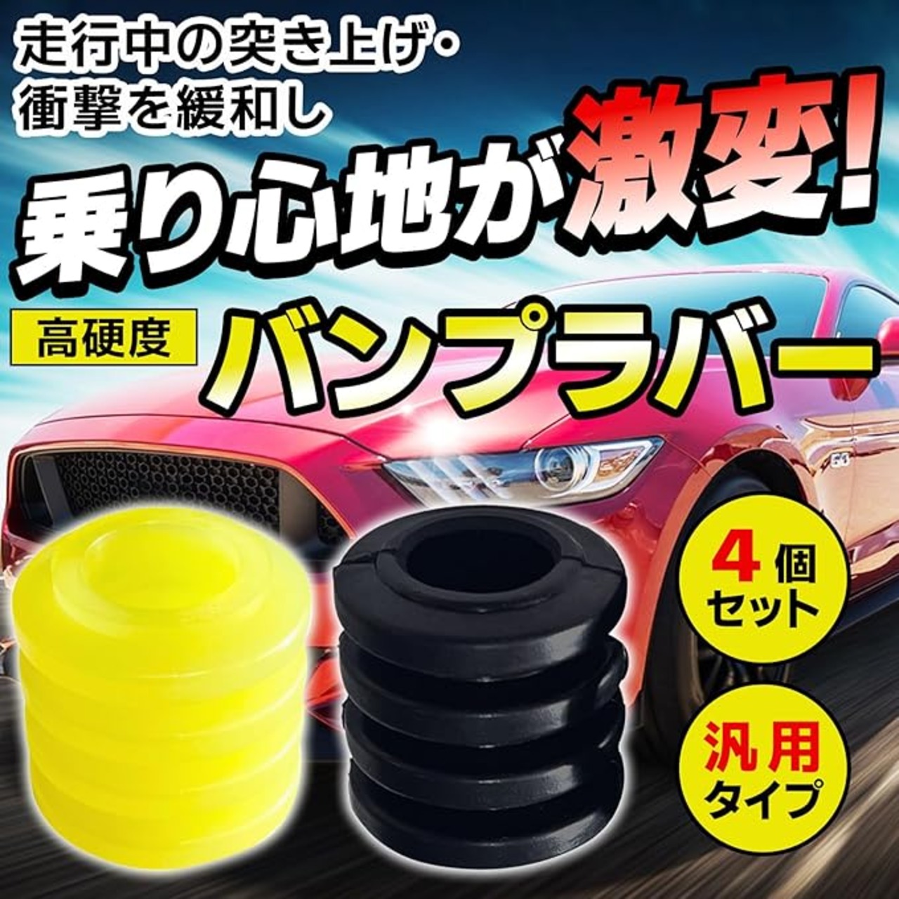硬度70のラバー製バンプラバーの4個セットです。汎用品のため、サイズが合えば車種問わずご使用いただけます。アウトリップ、ヘラフラッシュ、スタンス系に。