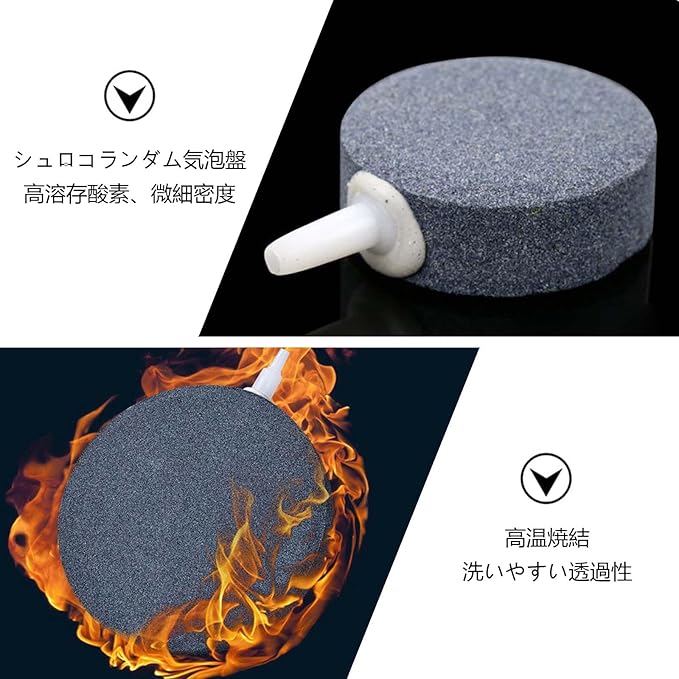 【材料】気泡ディフューザー は、高温焼結で作られています。一般的に利用可能な空気気泡石とは異なり、材料は強く耐久性があります。繰り返し洗浄し、長時間使用できます。