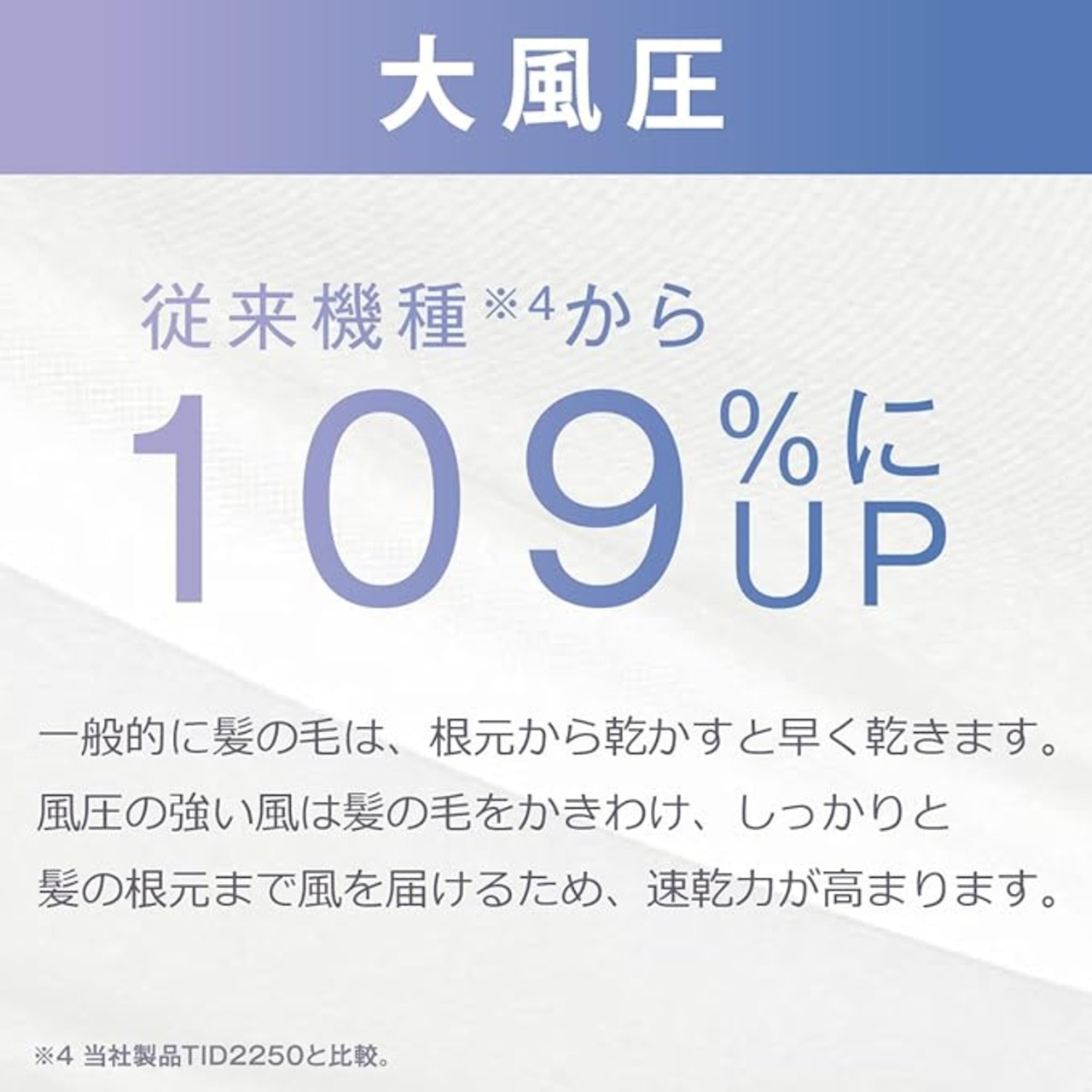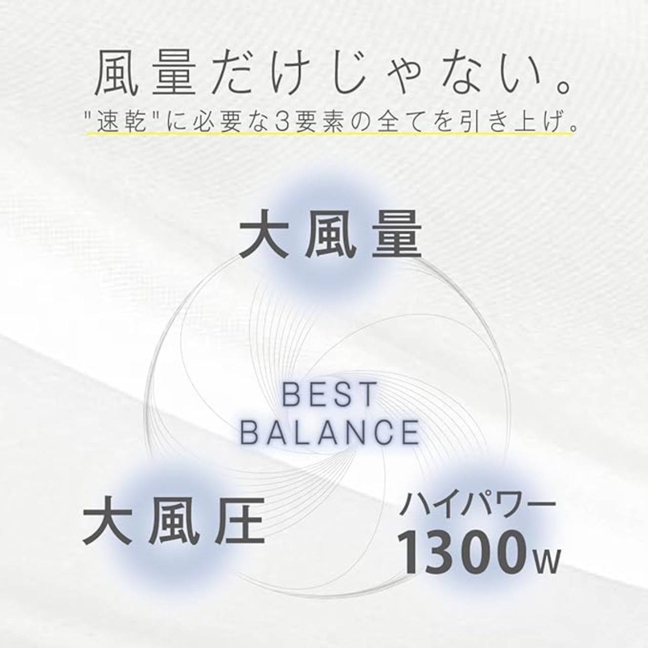 1大風量 2.3m3/分※3 大風圧 従来機種から109%にUP※43ハイパワー1300W 大風量でも暖かい風で快適ドライ