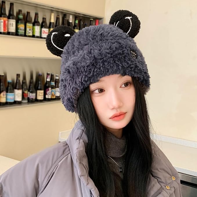 クマ耳 バケットハット ふわふわ キャップ 冬 レディース 防寒帽子 可愛い 厚手 小顔効果 冬 ハット 韓国 くまの耳 可愛い 耳付き 防寒 熊 サファリハット かわいい 女の子 Free Size 帽子 白 軽量 シンプル 秋冬 グレー