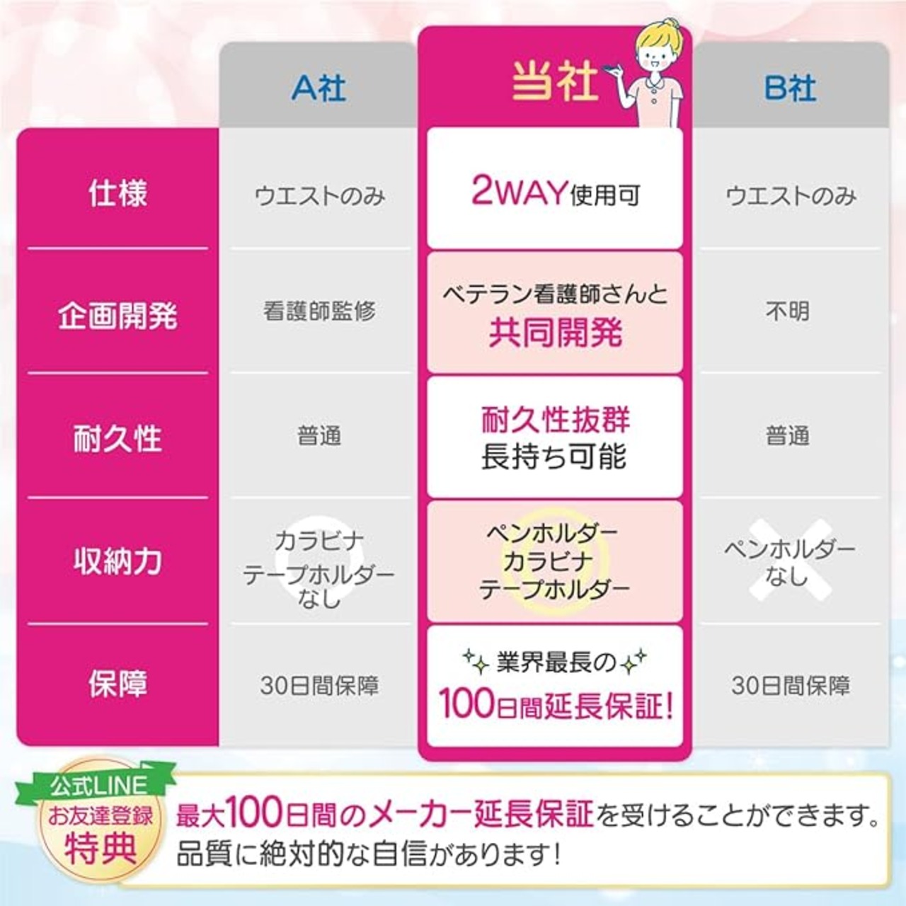 【ウエスト&ショルダー 自由に調整可能な2way仕様】: 当社のナースポーチはウエストポーチとショルダーポーチの2wayデザインで、お仕事のシーンやご自身の好みに合わせて使用できます。ウエストベルト、ショルダーベルトともに最大120cmまで対応しています。