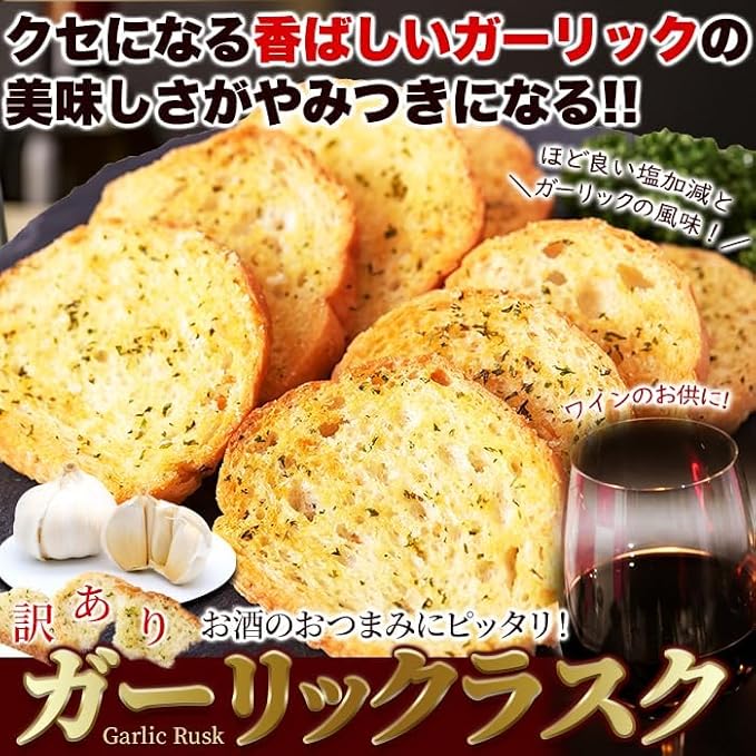 訳あり 天然生活 ガーリックラスク (200g) お菓子 バター使用 簡易包装 無地袋 無選別 (200g 3袋, ガーリック)