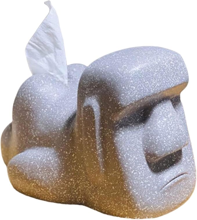モアイ像 ティッシュケース おもしろグッズ モアイ ティッシュホル-ダー 面白いプレゼントライトグレーアート 旅行 世界遺産