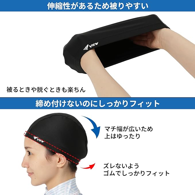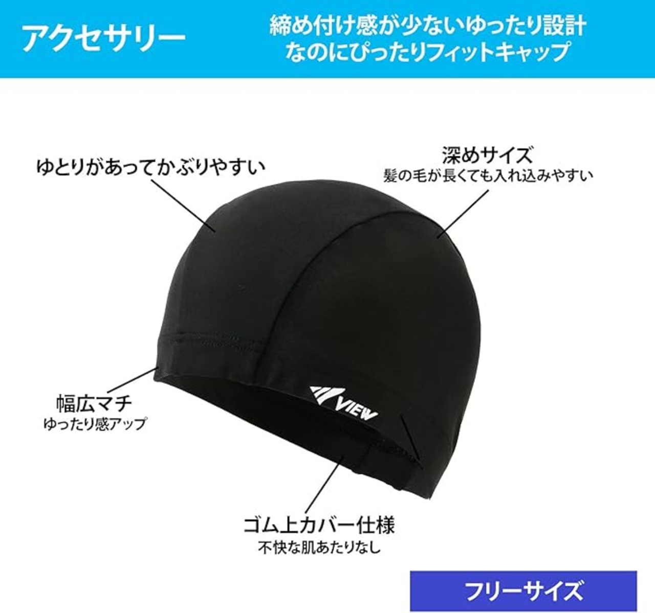 VIEW(ビュー) スイムキャップ スイミングキャップ ツーウェイトリコット ゆったりタイプ ブラック V154 BK