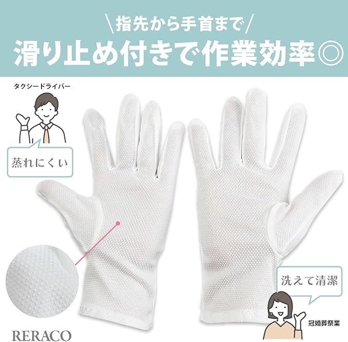 [RERACO] 白手袋 滑り止め付き フォーマル 手袋 白 背抜き手袋 綿 無地 薄手 汗吸収 ホテルマン バス 運転手 選挙 警備用 式典用