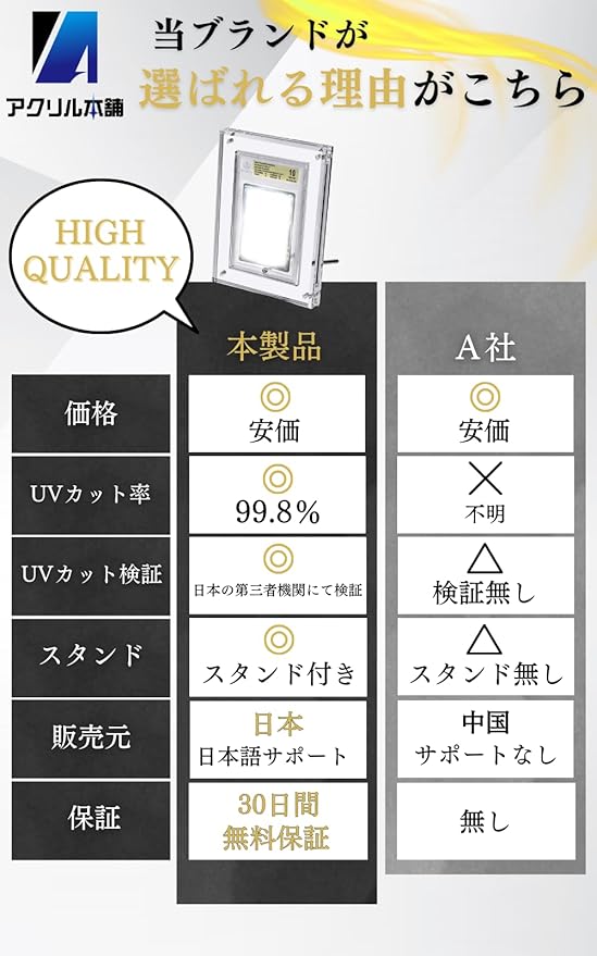 【✅両面UVカット率 99.8%】 アクリル本体にUVカット機能 を搭載。 日焼けによる変色、劣化、色褪せを防ぎ、大切なカードを 紫外線 によるダメージから守ります。 蛍光灯の光でもカードが 色落ち することなくディスプレイ可能です。第三者機関にて試験済み (第三者機関での検証につきまして_試験名 : 紫外線遮蔽性試験 証明書番号:DTTR23070702 出典:desirtech合同会社 日付:2023/7/7)