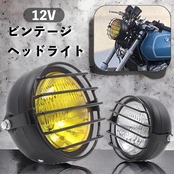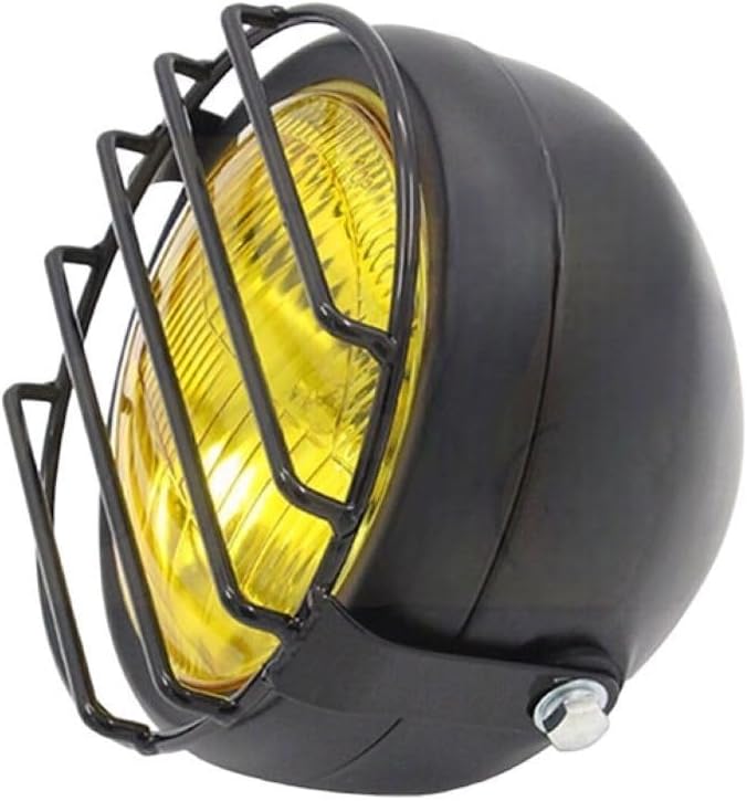 Kanoan ヘッドライト べーツライト ビンテージ 12V 5.5インチ レンズ ガードレンズ ガード 付き 社外品 汎用 TW225 TW250 セロー225 セロー250 トリッカー DT250 XT250 等 (ブラックボディ イエローレンズ)