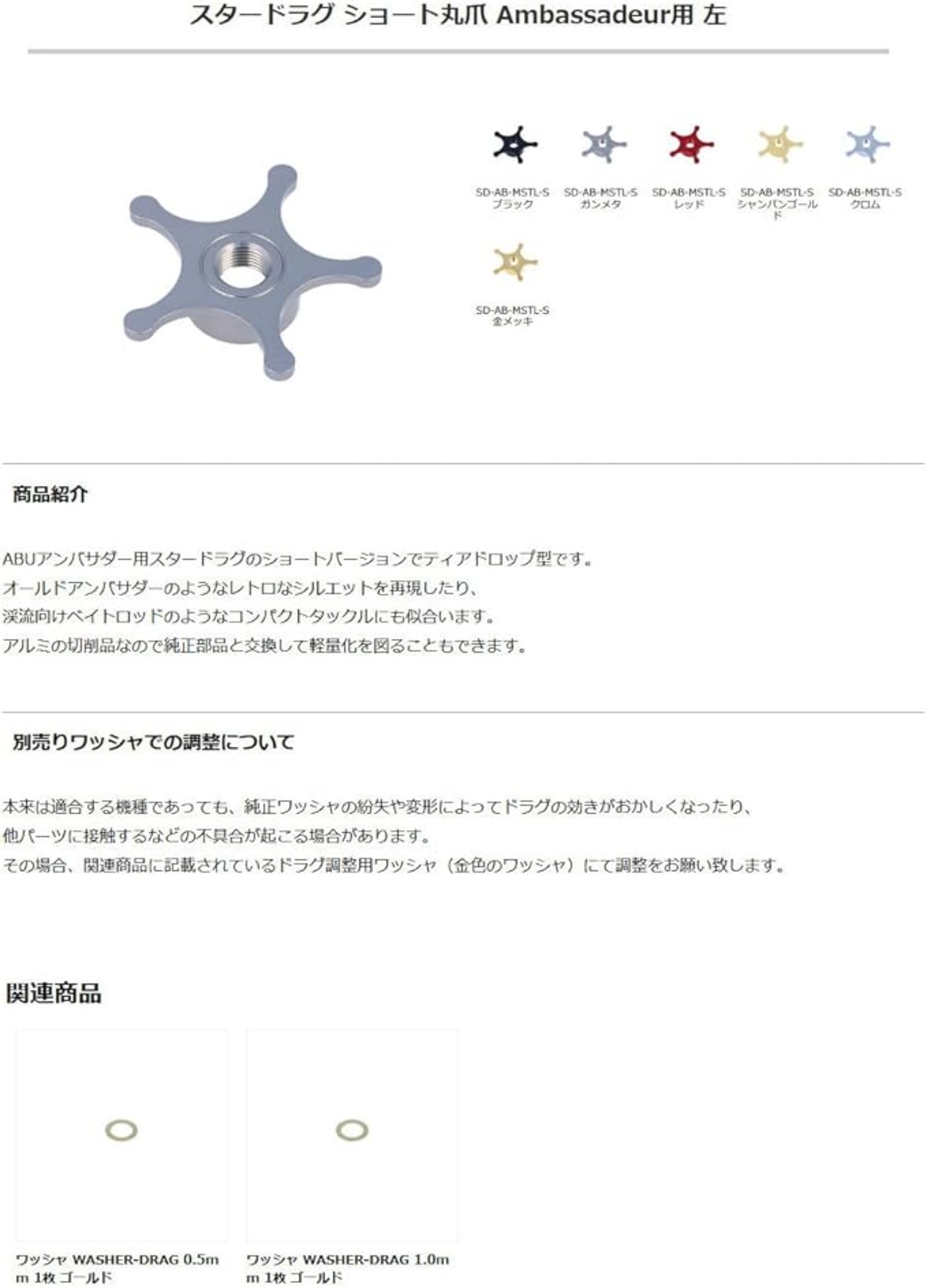 その場合、関連商品に記載されているドラグ調整用ワッシャ (金色のワッシャ)にて調整をお願い致します。