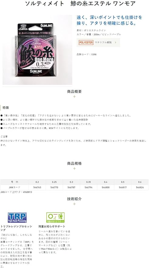 サンライン(SUNLINE) ソルティメイト 鯵の糸エステル ワンモア 200m ビビッドパープル