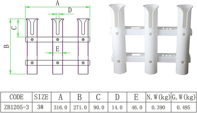 製品仕様 材質:ナイロン 表面:ホワイト ブラック サイズ:271mm パッキング:1pcsa 特徴 ラバーインサートで釣り竿を表面への摩耗から保護します 取り付け簡単、取付ブラケットにはボルトが付属します(アレンキーは含まれていません)。