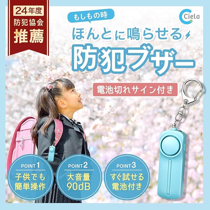 【⚡️2024年防犯協会推薦】全国防犯協会から【優良防犯ブザー】の認定を受け、推薦された商品です。女の子だけでなく、男の子も防犯した方が良い時代に【より確かな安心・安全】をお届けするCiela小学生向け防犯ブザー。 ※※※推薦品と偽った模造品には十分お気をつけください。推薦品には認定のシールが添付されます※※※