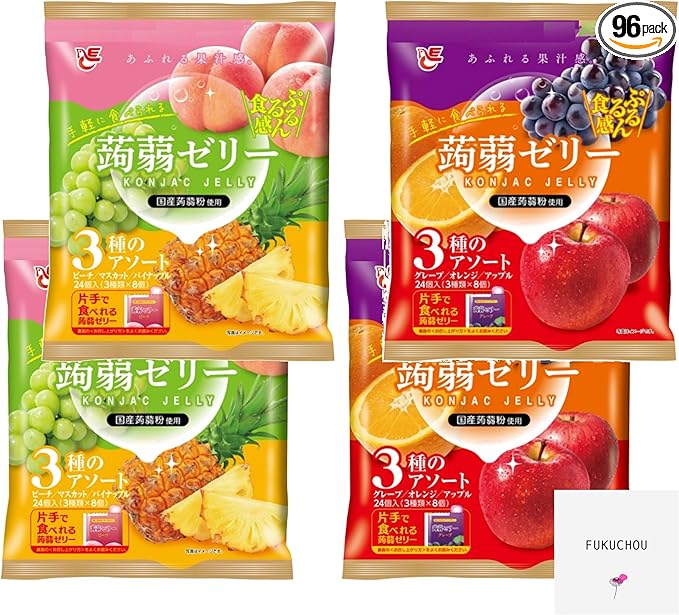 【まとめ買い】エースベーカリー 蒟蒻ゼリー 3種アソートセット 96食(グレープ+オレンジ+アップル)(ピーチ+マスカット+パイナップル)各8個入り 2袋づつ こんにゃくゼリー 国産蒟蒻粉使用 FKオリジナル