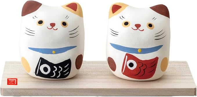 [クラフトマンハウス] 五月人形 端午の節句 コンパクト ミニ 手のひらサイズ 陶器 縁起物 【張子風 ネコと鯉のぼり】