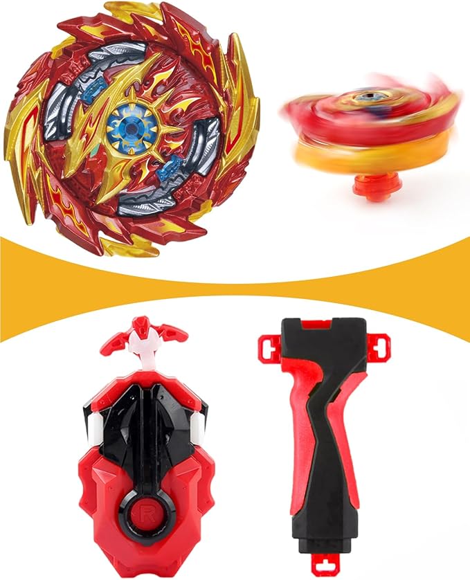 Bey Battling Burst Proシリーズ スーパーハイペリオンストリングランチャーとグリップパックセット、右/左スピンベイランチャー&グリップスピントップ付きグリップ、8歳の男の子&女の子向けキッズおもちゃ